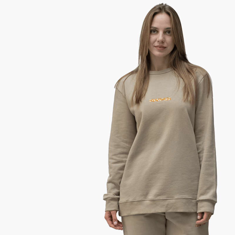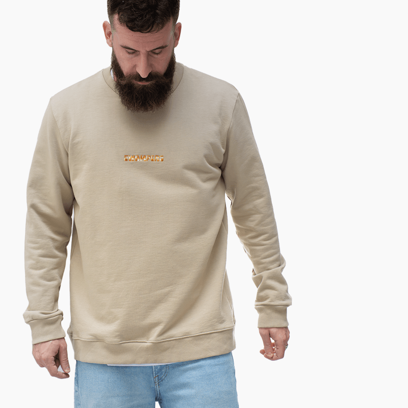 Beige Embroidered Crewneck 100% οργανικό βαμβάκι σε κανονική γραμμή, σχεδιασμένο και κατασκευασμένο στην Ελλάδα.