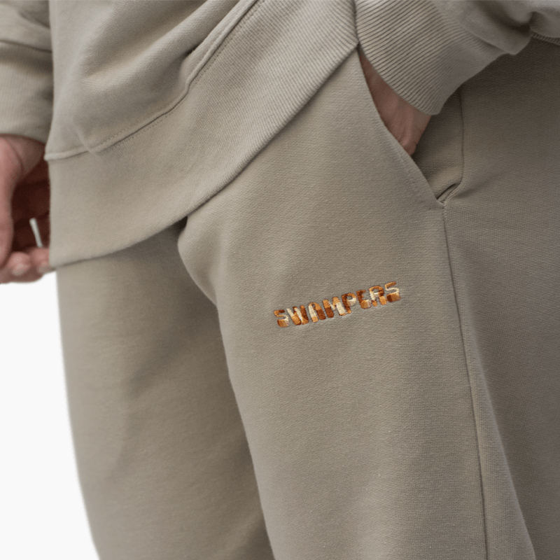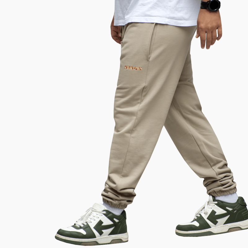 Beige Embroidered Sweatpants 100% οργανικό βαμβάκι σε κανονική γραμμή, σχεδιασμένο και κατασκευασμένο στην Ελλάδα.