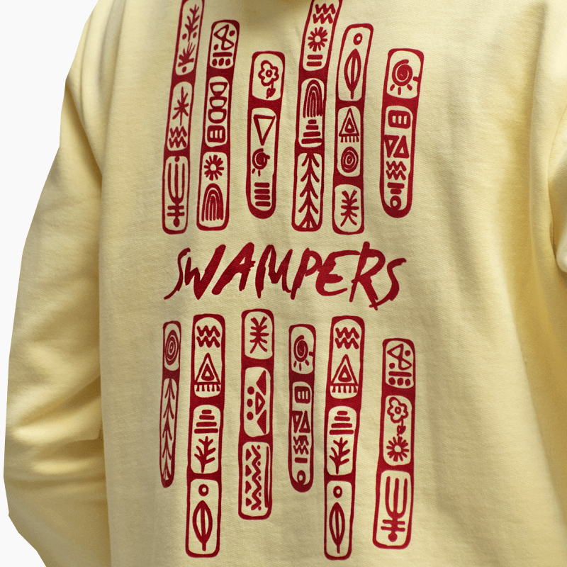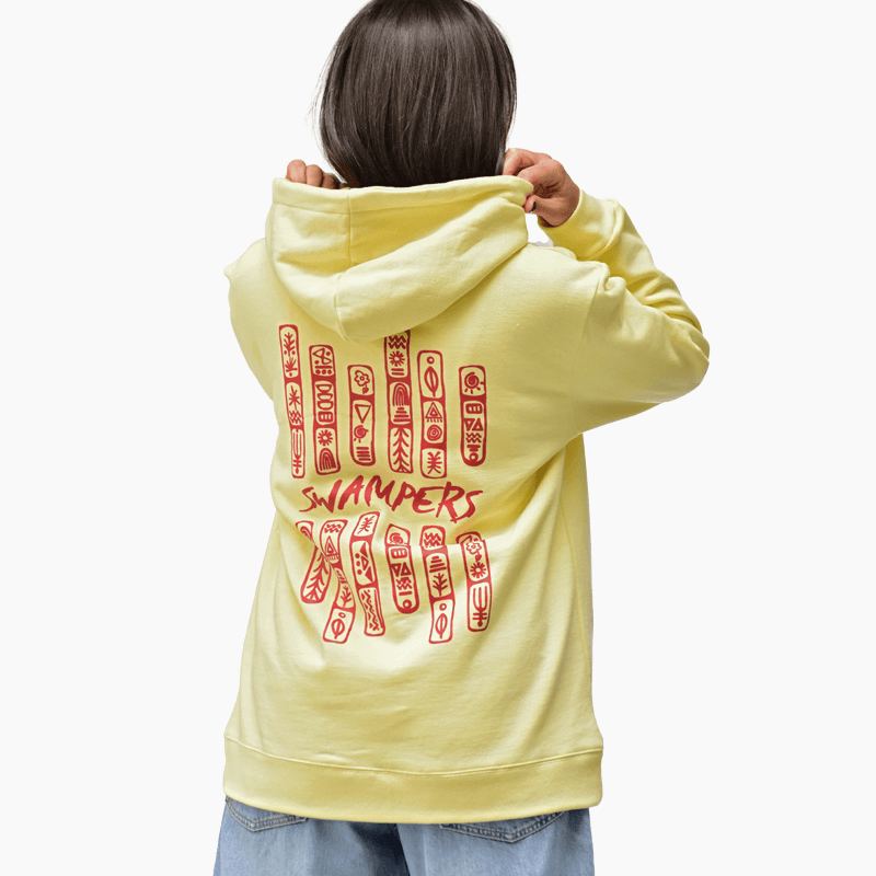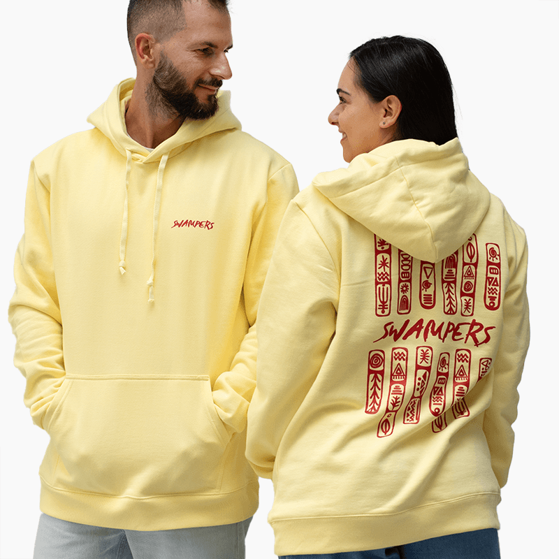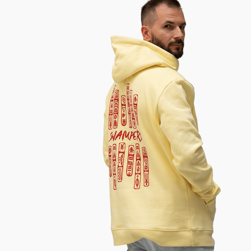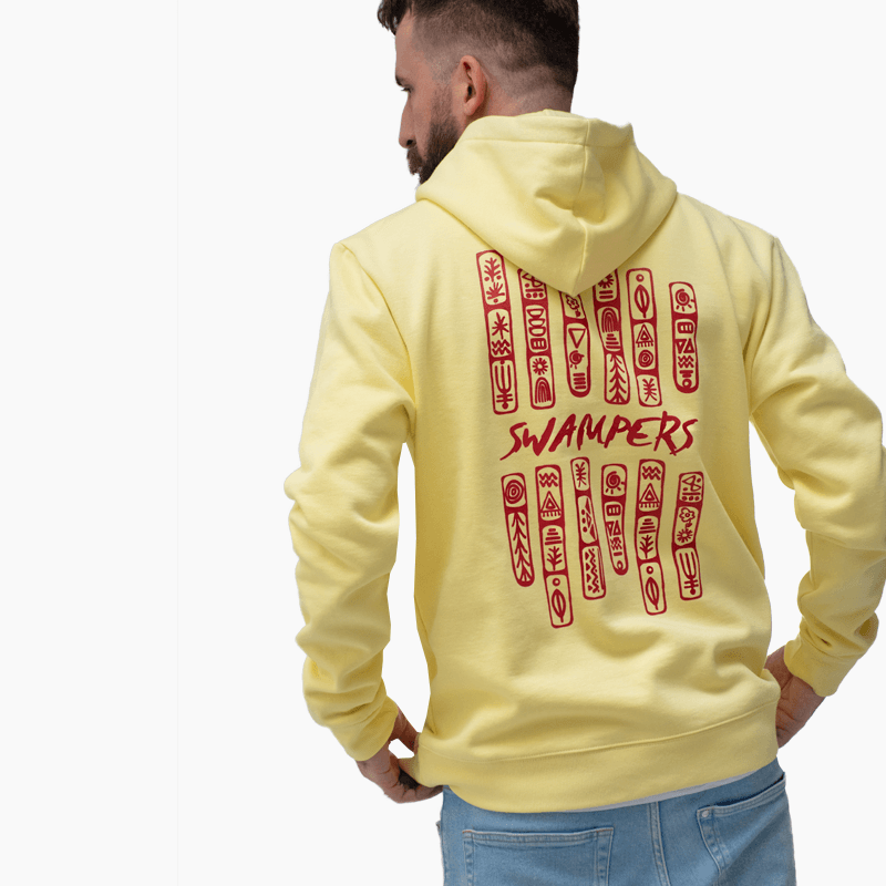 Cave Paintings Yellow Hoodie 100% οργανικό βαμβάκι σε κανονική γραμμή, σχεδιασμένο και κατασκευασμένο στην Ελλάδα.