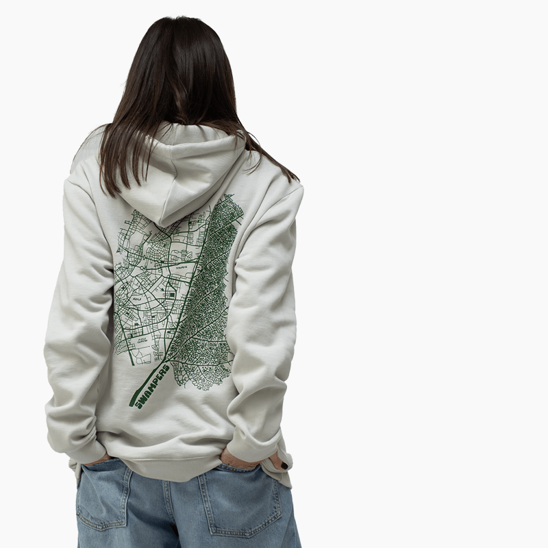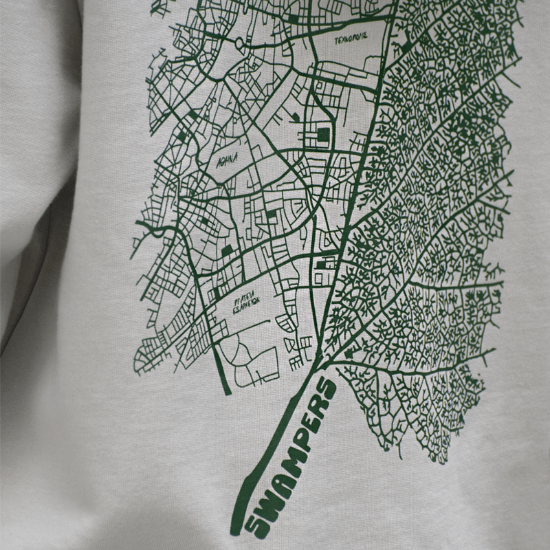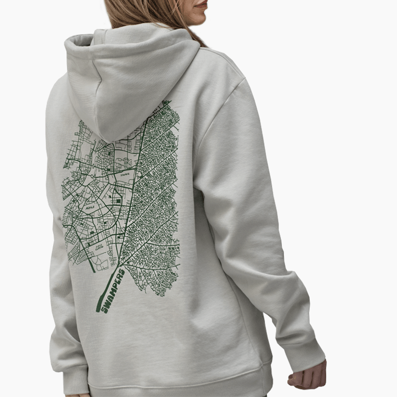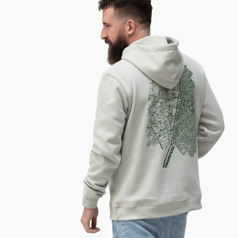 Grey Leaf Map Hoodie 100% οργανικό βαμβάκι σε κανονική γραμμή, σχεδιασμένο και κατασκευασμένο στην Ελλάδα.